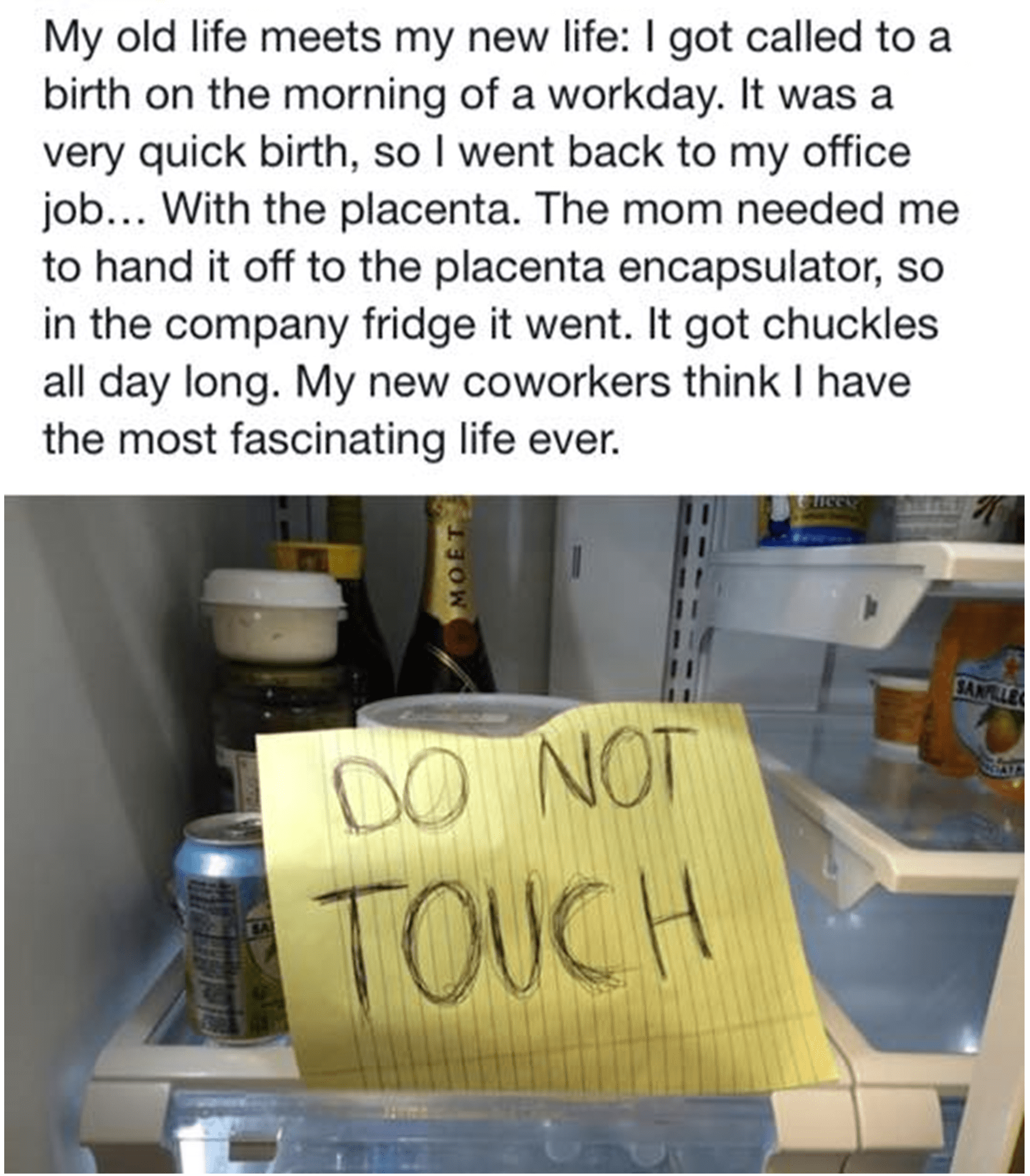 A few days ago, though, this topic was kicked into high gear by a photo posted online by a doula that was tasked with delivering a placenta to the PE after the birth. Unfortunately, this particular doula let her day job and her birth work collide when she took said placenta to work with her and kept it in the company refrigerator.